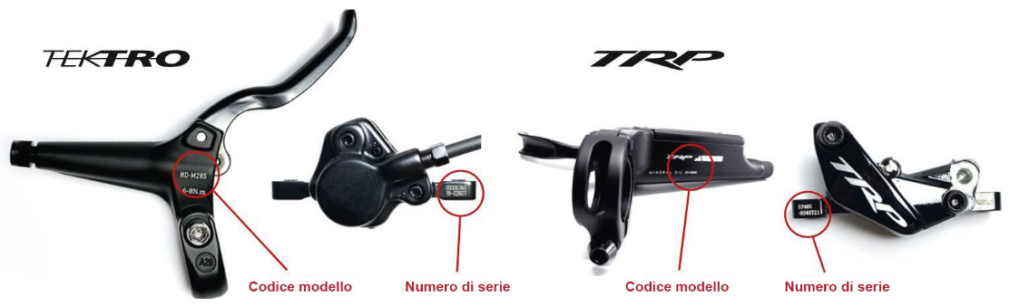 Istruzioni per individuare il modello e il numero di serie di un freno Tektro o TRP